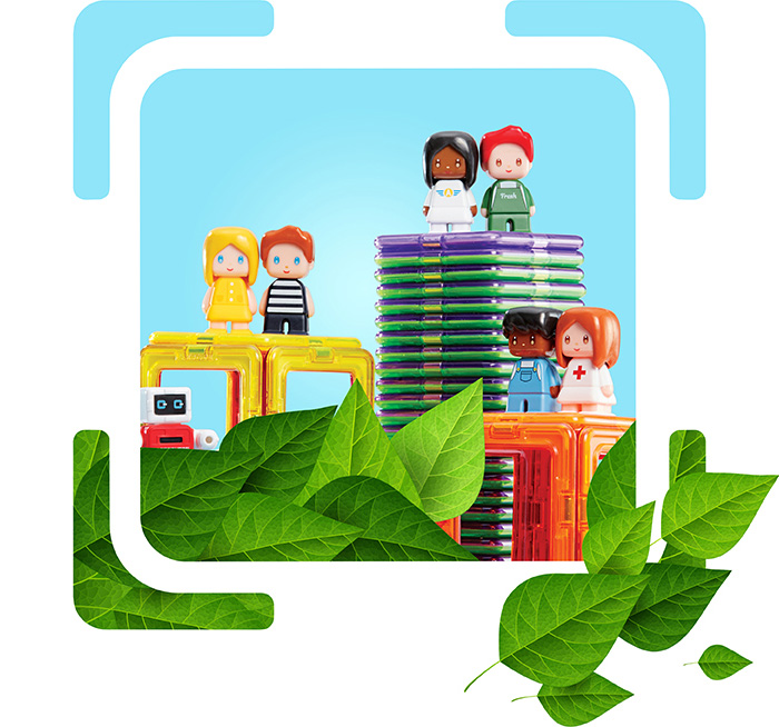 맥포머스 자석피스와 액세서리, 포장재에 친환경 소재 적용, 분해가 되지 않는 것으로 알려져 있는 PVC 로 되어 있는 부분은 TPE로 단계적인 전환을 시키도록 할 계획입니다. 재활용 플라스틱의 사용은 탄소 배출량을 줄여주기 때문에 환경을 파괴하는 요소를 차단하는 효과가 있습니다.