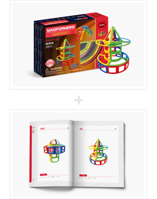 맥포머스 커브 세트는 곡선으로 이루어진 맥포머스 피스들(아치,부채꼴, 콘 등)을 이용하여 곡면을 표현한 조형물을 직접 만들어 볼 수 있습니다.