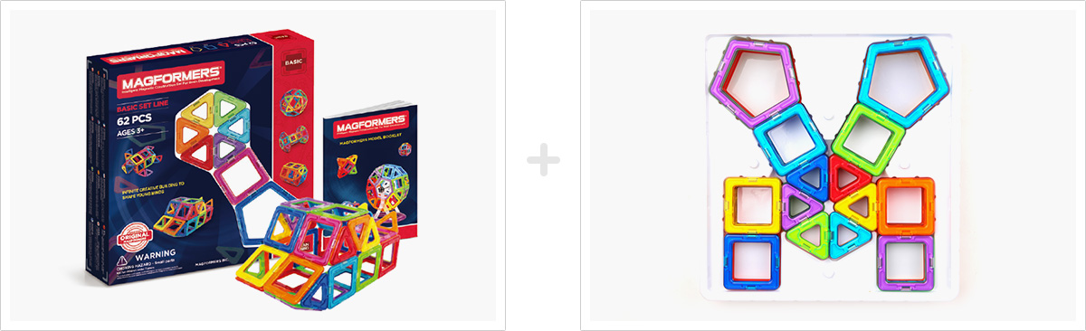 맥포머스 62는 삼각형, 사각형, 오각형으로 이루어져 보다 다양한 활용이 가능한 세트입니다.